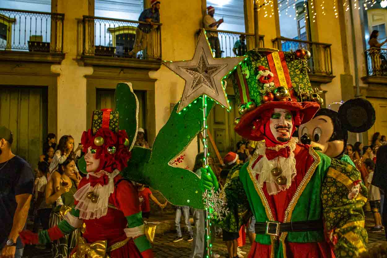 A cidade de Mariana abriu a temporada natalina em grande estilo nesta quinta (28). O Natal de Luz, com o tema Tradição que Brilha teve sua abertura em um cortejo, contou com a presença do Papai Noel, da turma do Mickey e de Elsa e Olaf do filme Frozen. A noite foi coroada com o acendimento das luzes natalinas.