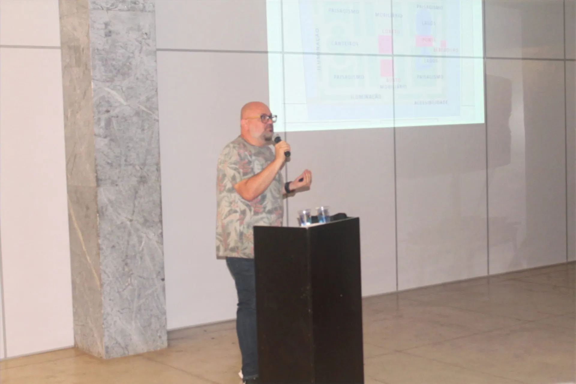 Depois de uma breve fala de Daniela Amorim, representando a Fundação Renova, a apresentação do projeto foi feita pelo paisagista Marco Nieves, integrante da equipe da empresa Gema Arquitetura e Urbanismo. “É importante entender que isso aqui[o projeto]é de todos. E temos que ter essa abertura de ouvir”, declarou o paisagista na abertura de sua participação. A exposição da proposta de revitalização do Jardim focou aspectos técnicos tais como objetivos; conceitos gerais (revitalização e restauro); comparação entre a situação atual e soluções projetuais; detalhes do projeto (paisagismo, acessibilidade, percepção do casario do entorno da praça, lagos e ponte, iluminação, mobiliário, materiais, bebedouro, coreto e busto de Gomes Freire), inclusive com o recurso de um convite a uma experiência sensorial, com uso de música calma e relaxante, para “sentir fluir a ideia da importância de preservação”. Após pouco mais de 40 minutos de explanação, a palavra foi aberta aos participantes da audiência.