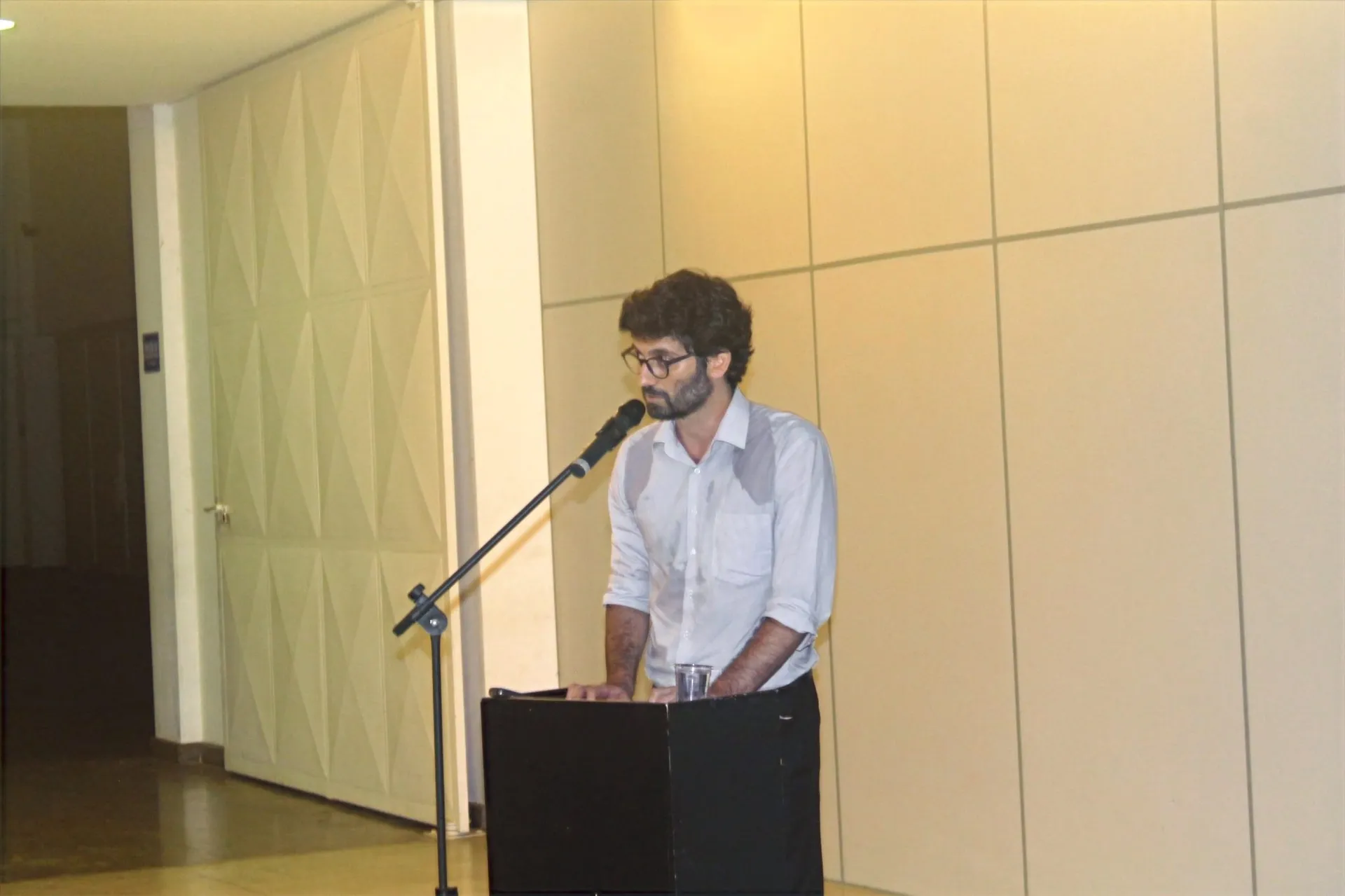 Primeiro a usar a palavra, o advogado e membro do Conselho Municipal de Patrimônio Cultural (COMPAT) e do Conselho Municipal de Desenvolvimento Ambiental (CODEMA), fez um pronunciamento carregado de emoção, lembrando sua condição de marianense, filho de uma família estabelecida na cidade há mais de 60 anos. “[Congratulo]à cultura do futebol que permeou o imaginário marianense por incontáveis e inesquecíveis anos, todos vividos no Jardim”, declarou Bernardo, homenageando também as escolas, as corporações musicais, as populações do centro, bairros e distritos, as manifestações populares e festas que sempre tiveram o Jardim como palco. “Somos filhos daqueles que frequentaram o Jardim para comemorar vitórias, chorar derrotas, abraçar amigos, beijar na boca, tomar cerveja, recitar versos, ouvir música, trocar ideias, jogar conversa fora, rir de palhaços, deixar o tempo passar, simplesmente passear. Somos filhos do Jardim”, enfatizou. Fez ainda menção à tragédia decorrente do rompimento da barragem de Fundão, pertencente à Samarco, referindo-se à proposta como um “projeto moderno, originado de um crime que não se cala e não vai se calar nunca. A lama não sairá de nós e não deve ser lavada”. E finalizou afirmando que “nossos algozes se apropriam da comunicação, da informação. Têm dinheiro. Erramos no passado recente. Não soubemos administrar, não soubemos eleger. Nem por isso, podem se apropriar de nós, de nossas ideias, de nossas culturas, de nossa Mariana. Somos forjados de um canto de sereia, a mineração. Proporcionou-nos cultura, riqueza, miséria e morte. A condução dos nossos destinos sempre foi dos algozes. Basta! Temos história, temos memória. Somos marianenses. Na dor e na alegria. Assumimos nossos erros. Doa a quem doer. Precisamos de cuidado, só. Temos outras prioridades”.