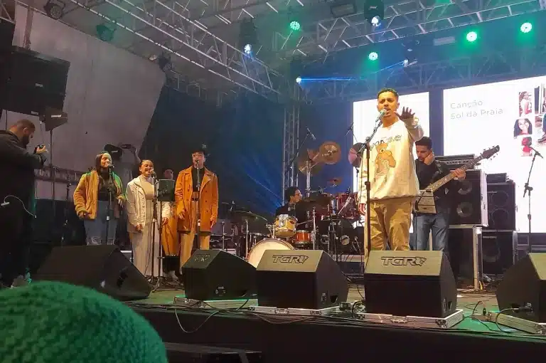 A tenda instalada na Praça da Sé foi providencial, protegendo a plateia de uma chuva fina e constante que começou a cair na noite dessa quinta-feira (03). Isso aumentou a sensação de proximidade de todos os presentes que, depois da apresentação das 10 primeiras músicas selecionadas para a fase semifinal do Festival Canta Mariana 2022, cantaram e dançaram ao som da banda Blitz. Nesta sexta (04) serão apresentadas as outras 10 classificadas e indicadas as finalistas que concorrem, no sábado (05) a troféus e prêmios de R$25 mil, para os três primeiros lugares.