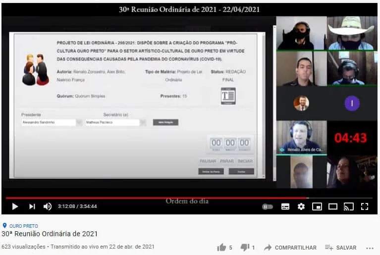 O secretário esclareceu que caso haja parecer contrário à sanção do projeto, a Administração Municipal proporá algo semelhante ao Pró-Cultura Ouro Preto. “É sim da nossa vontade lançar um programa voltado às necessidades e às demandas do turismo e da cultura no meio dessa crise [pandemia]. Nós sabemos que foram os primeiros a pararem e vão ser os últimos a voltarem. É uma cadeia produtiva que precisa desse auxílio nesse momento. É uma obrigação que nós temos com esses profissionais que atuam numa área de tanta importância para Ouro Preto, que é uma Cidade Patrimônio da Humanidade, muito ligada às artes, à cultura e ao turismo”, afirma Felipe Guerra. Segundo ele, já existe, inclusive, um recurso no Fundo Municipal de Cultura que a secretária de Cultura e Patrimônio, Margareth Monteiro, irá usar para fazer esse auxílio às classes artísticas, culturais e turísticas de Ouro Preto.
