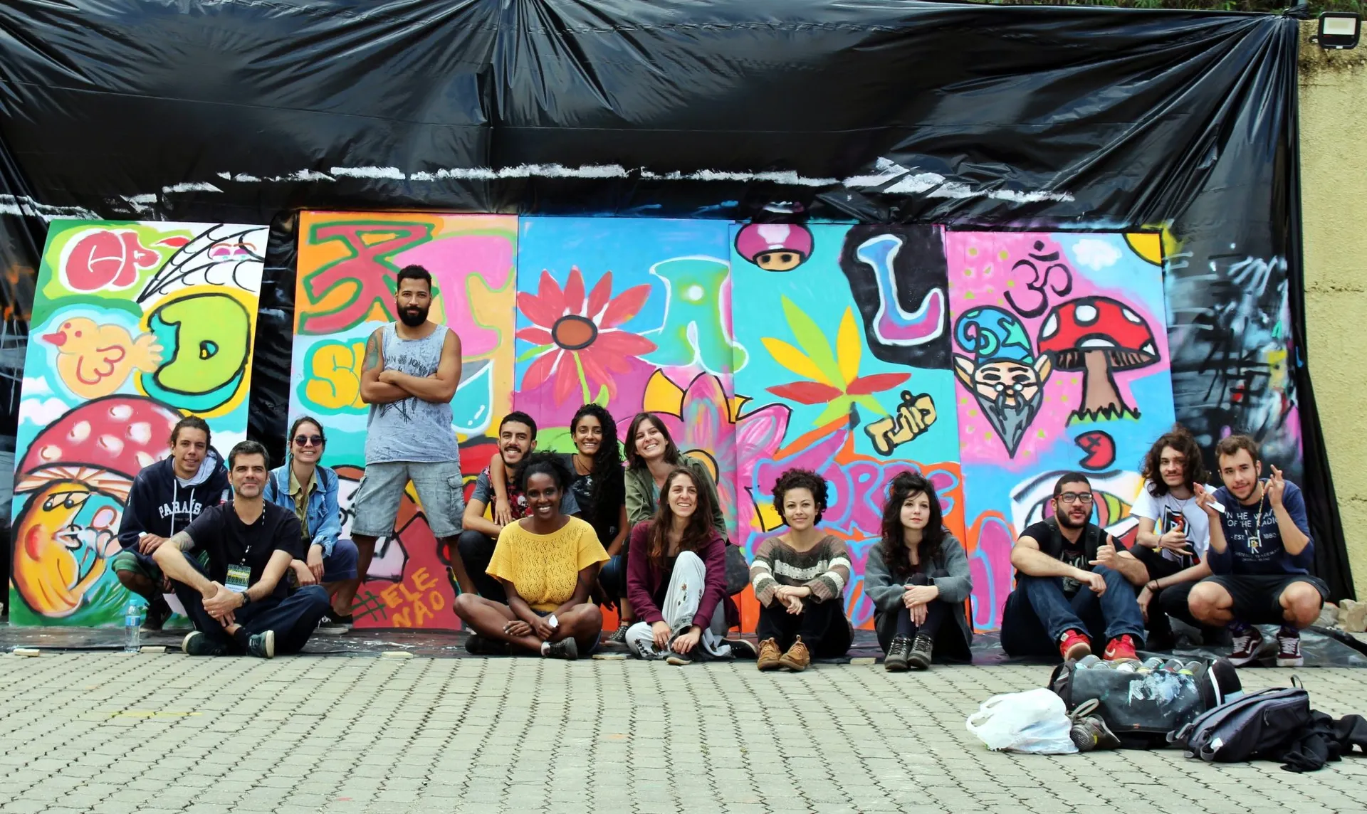 O artista falou a ainda sobre a importância de se construir junto. “Eu acho que o contato físico, de estar com as pessoas, de sentir a energia das pessoas, de ter uma troca, de conversar, é uma coisa importantíssima. É até uma das coisas que me levou a começar no grafite, porque de certa forma o grafite faz com que as pessoas valorizem o espaço público como um espaço de convívio. Então se você põe uma arte num lugar onde todo mundo passa, você vai favorecer que eles convivam naquele espeço, e que pessoas diferentes se encontrem. Acho que encontro é uma palavra chave, o encontro, o convívio e a troca”.