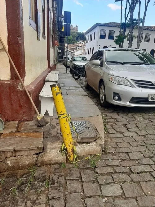 Para ilustrar os problemas mencionados, Tales exibiu quatro fotografias de pontos específicos do local, referentes a trânsito, estacionamento e ausência de acessibilidade.