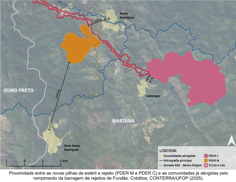 “Tanto a pilha de Bento quanto a de Camargos vão estar muito próximas do rio Gualaxo do Norte, que foi soterrado por 400 metros cúbicos de rejeito”, disse Mauro à Agência Pública. “A gente vê a possibilidade de se repetir todo o desastre novamente, não sei se daqui a cinco ou vinte anos, mas fica esse fantasma de uma repetição”.