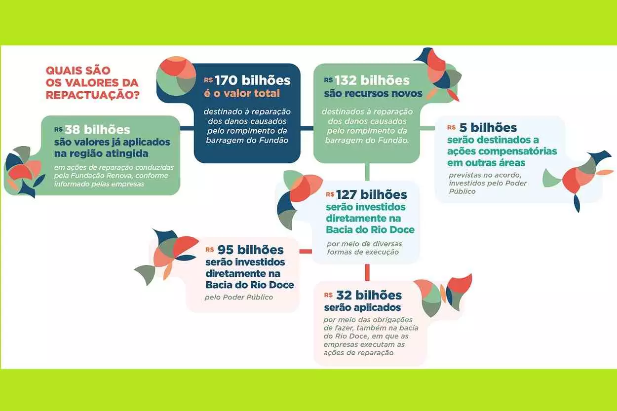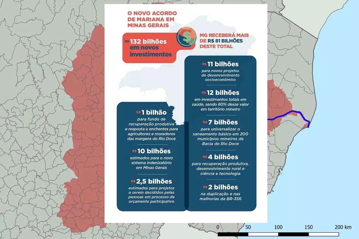 Outros R$11 bilhões estão previstos para aplicação em novos projetos de desenvolvimento socioeconômico a serem realizados pelo Governo de Minas, sendo 80% desse recurso destinados exclusivamente para a região atingida.