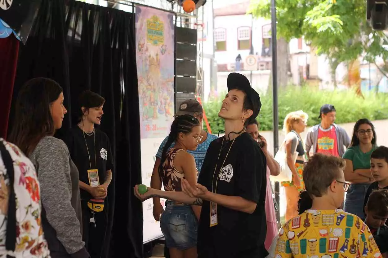 Simultâneas aos truques do Mágico Evan e da roda de conversa de Marcos Teixeira, as oficinas de Bolha de Sabão, com Tiago Carva, e de Malabares, com as Irmãs Cola, além da atividade “Pinte o Palhaço”, aconteceram na Praça Gomes Freire (Jardim) na manhã do sábado (27). As atrações atraíram públicos de diversas idades, em sua maioria crianças, e proporcionaram uma atmosfera circense na praça.