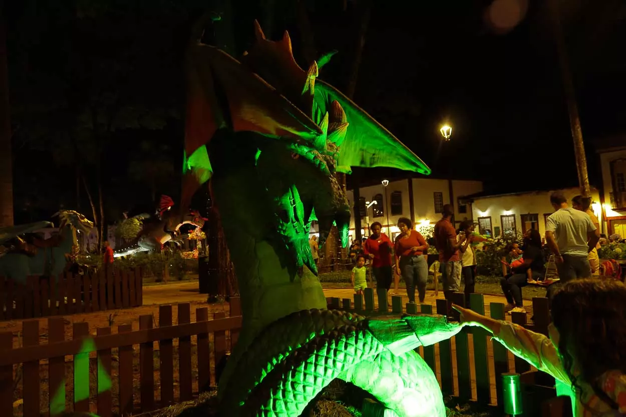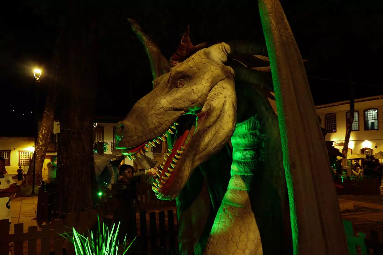 Na noite dessa terça (28), a Praça Gomes Freire foi invadida pelos dragões. Os animais mitológicos ficarão em exposição no Jardim até o fim de novembro. O clima da praça estava caloroso, recheado de crianças empolgadas com as esculturas que se mexem e imitam sons de dragões.