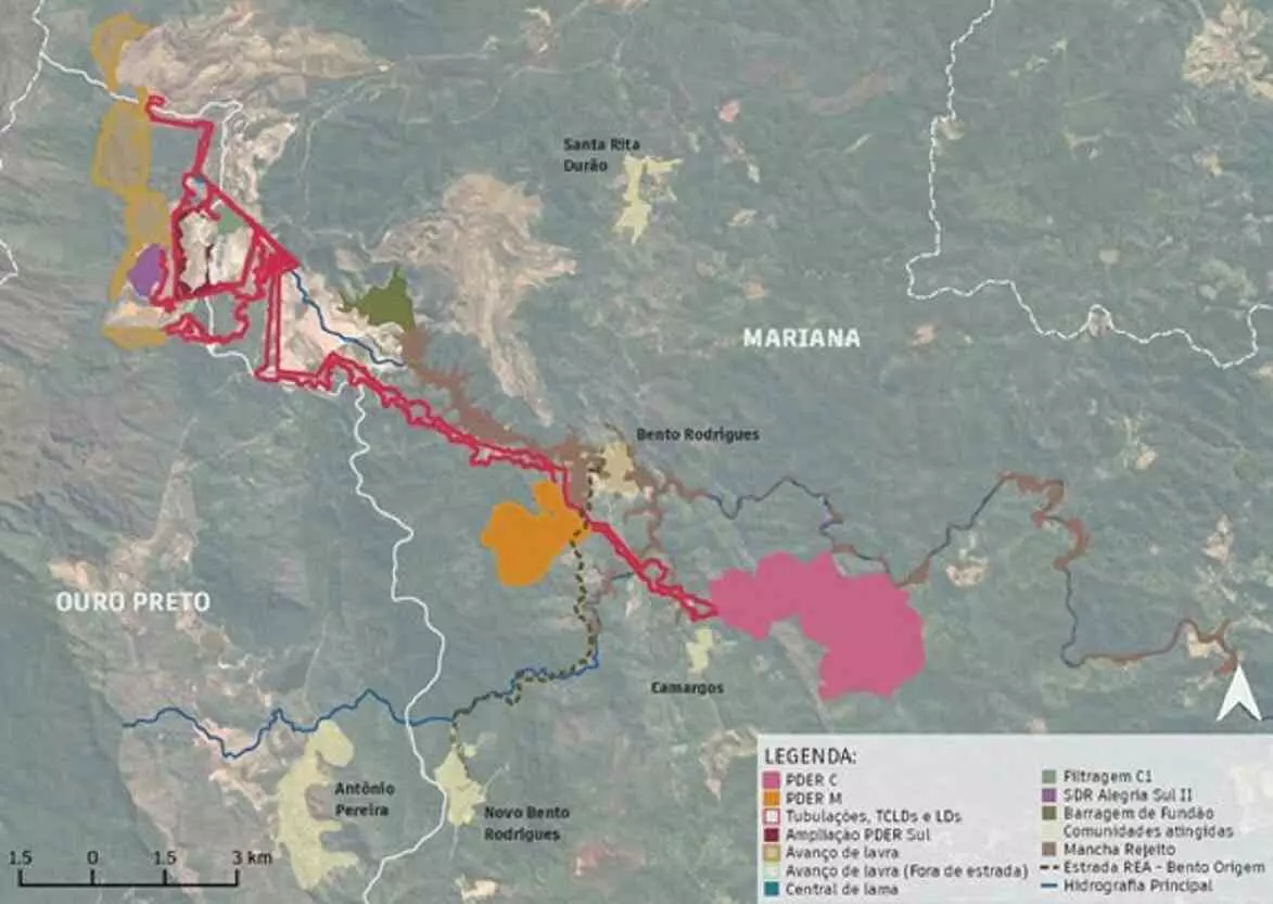 Com relação à pilha de estéril e rejeito PDER M, proposta no entorno imediato de Bento Rodrigues (território de origem) e também muito próxima do Novo Bento Rodrigues (reassentamento coletivo), de acordo com nota técnica do Grupo de Pesquisa e Extensão sobre Conflitos em Territórios Atingidos (CONTERRA/UFOP), a implantação do PLP, três etapas, totalizando uma altura final de 221m e volume final de 61.398.759m3, a montante do Dique S3, implica que “um desabamento da pilha pode afetar a estabilidade desta estrutura que, por sua vez, está a montante de Bento Rodrigues e do Dique S4, podendo resultar em novo desastre em cadeia”.