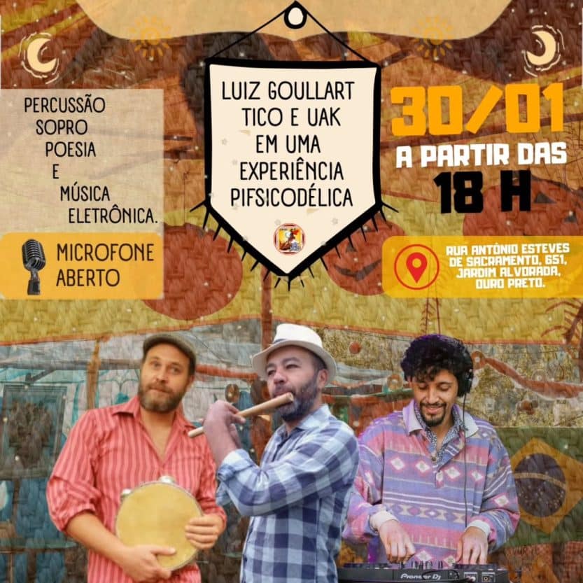 Percussão, sopro, poesia e música eletrônica.
