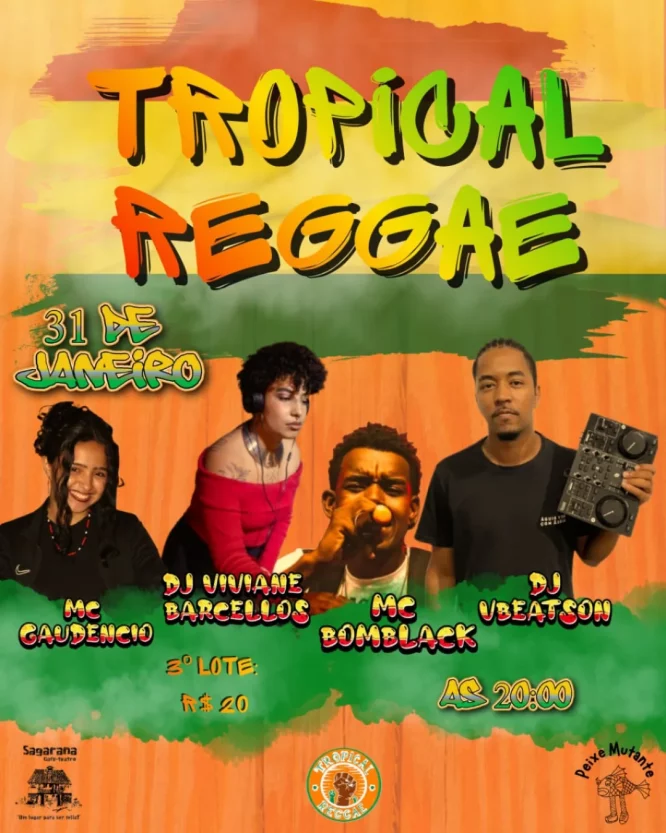 Sábado, dia 31 de janeiro tem Tropical Reggae no @sagarana.cafeteatro , chega junto pra tomar uma cerveja gelada, comer uma porção da melhor qualidade, é curtir o Reggae.