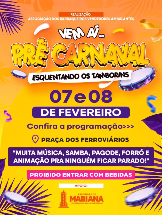 O tamborim já começou a esquentar! Vem curtir dois dias de muita música, alegria e diversão para toda a família na Praça dos Ferroviários.