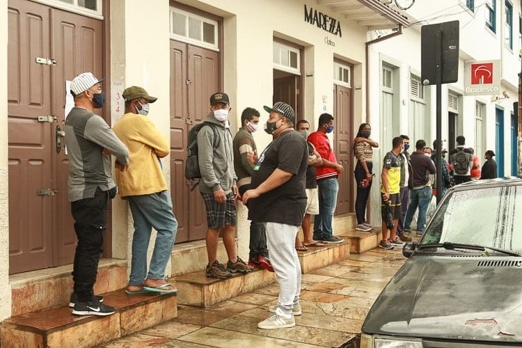 Clientes formaram fila para atendimento bancário na manhã de sexta (15) em Mariana - Foto: Lui Pereira/Agência Primaz
