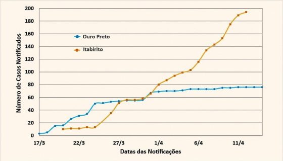 Sem casos confirmados até o momento, as prefeituras de Ouro Preto e Itabirito vêm adotando metodologias diferentes de divulgação das notificações. Paulo Xavier, secretário de saúde de Ouro Preto, divulga as informações diariamente em vídeo, geralmente acompanhado pelo prefeito Júlio Pimenta, reunindo os números nas categorias de “Notificados”, “Descartados ou Excluídos” e “Em Investigação”. Nos boletins da Prefeitura de Itabirito, os casos são agrupados em “Suspeitos”, “Prováveis ou Confirmados” e “Descartados e Excluídos”. Na categoria “Descartados e/ou Excluídos”, tanto Ouro Preto quanto Itabirito consideram como descartados os casos com resultado negativo dos exames, e como excluídos aqueles casos considerados leves e que não se incluem nas demais categorias. Em ambos as situações não há informações separadas de quantos exames deram resultado negativo para o coronavírus, exceto para uma morte com suspeita inicial, ocorrida em Ouro Preto, cujo exame revelou não haver correlação com a pandemia.