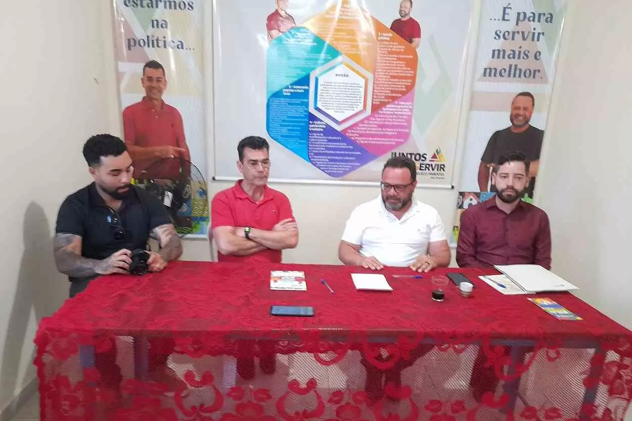 Acompanhados de assessores, Padre João e Leleco Pimentel receberam a imprensa regional na tarde dessa segunda-feira (29) – Foto: Luiz Loureiro/Agência Primaz