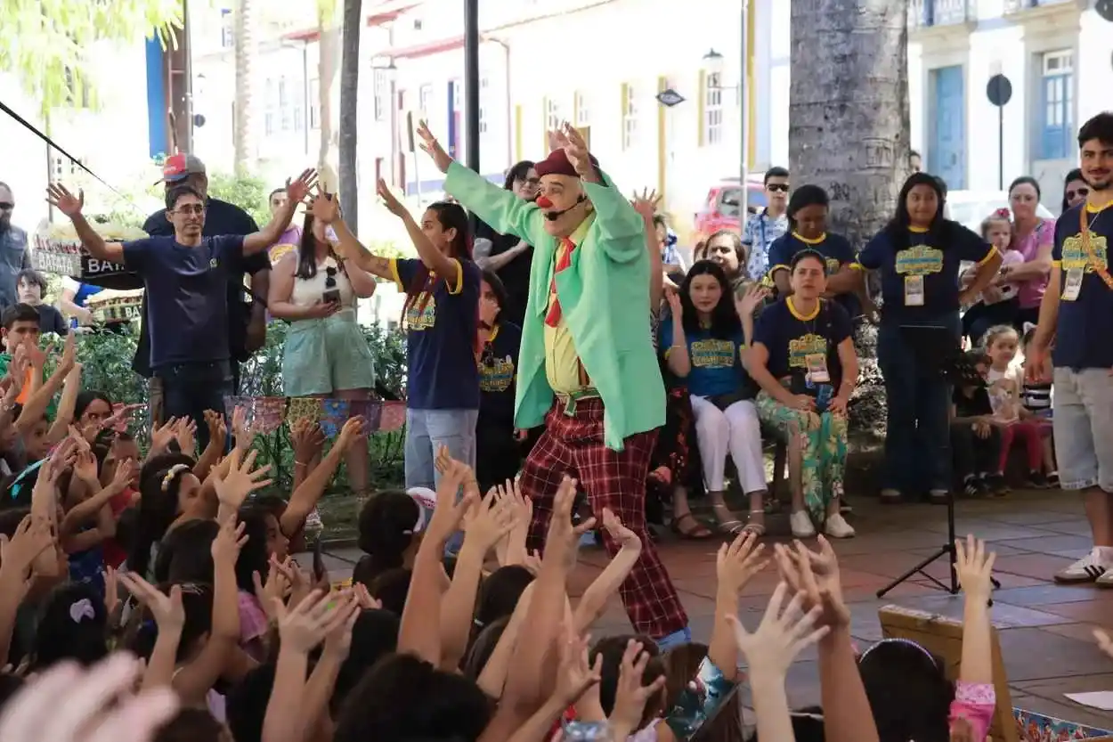 A tarde começou no Jardim com o espetáculo da palhaça Jojoba, presença constante em eventos culturais de Mariana. Sua apresentação envolveu o público em jogos e brincadeiras musicais, transformando espectadores em parte de uma verdadeira banda improvisada. “Eu não tenho nem palavras para descrever a felicidade”, disse ela. “Tem um encanto nesse evento que é tão lindo, tão a cara de Mariana. Eu não me imagino não estando aqui”.
