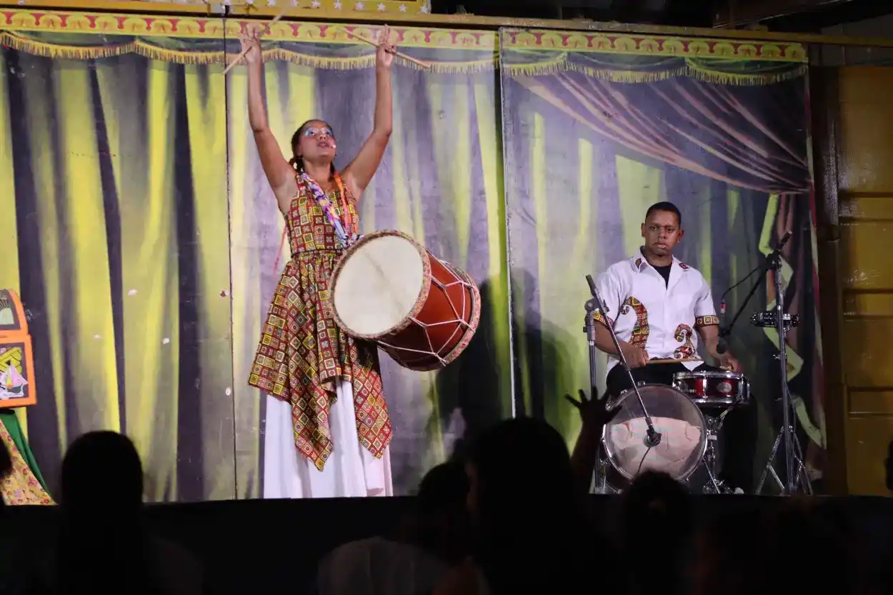 A artista Ingrid Ribeiro, natural de Mariana, mais precisamente do bairro Santo Antônio (Prainha), foi a encarregada da apresentação local da noite. Com seu colega da percussão Samuel, apelidado pelas crianças de Samu, foram apresentadas cantigas e histórias dos personagens Galinha, Jacaré, Barquinho, o Saci e o Bolinho, do livro O Caso do Bolinho.