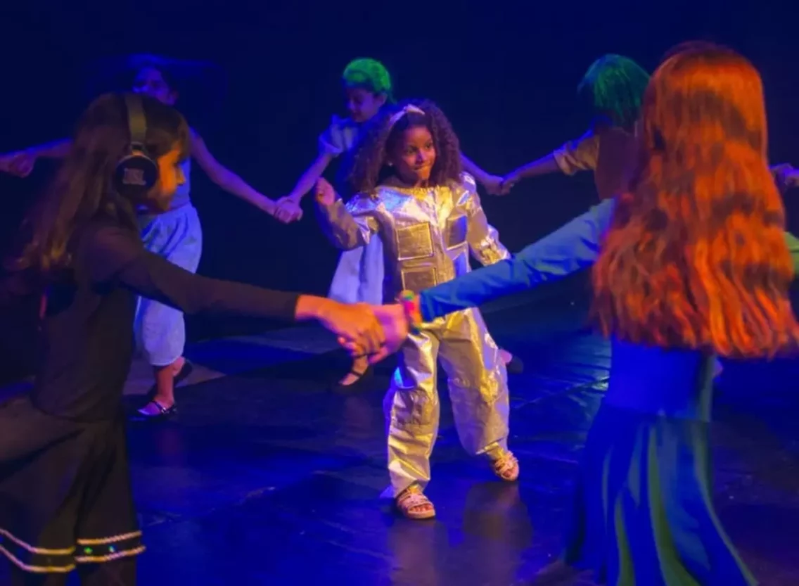 Para crianças, o curso propõe despertar as potencialidades corporais e vocais, com desenvolvimento de elementos básicos para a descoberta do jogo cênico, como ritmo, concentração, postura e exploração do espaço.