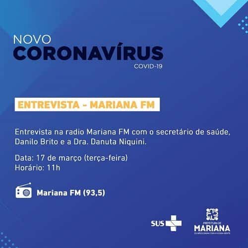Em entrevista coletiva concedida na manhã desta segunda-feira (16), o Prefeito de Mariana, Duarte Jr., acompanhado do secretário de Saúde Danilo Brito, detalhou as medidas que seriam tomadas pela administração municipal para enfrentamento da pandemia do coronavírus. Também participaram da coletiva a Dra. Danuta Niquini, responsável técnica pelo setor de Urgência e Emergência, e o Dr. André Diniz, da área de Atenção Básica da Secretaria de Saúde.